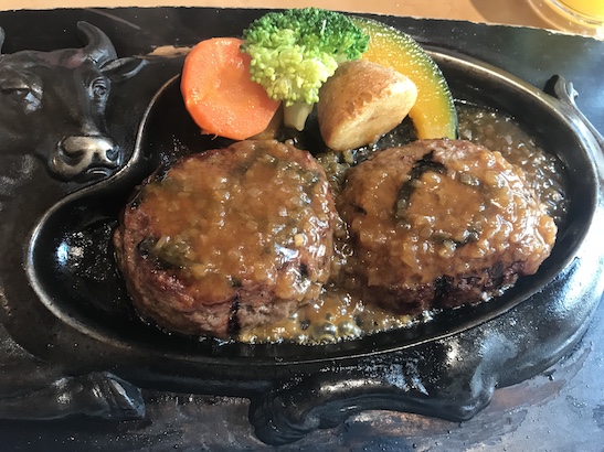 目の前で半分に切ってくれてジューッと焼いてくれます!!