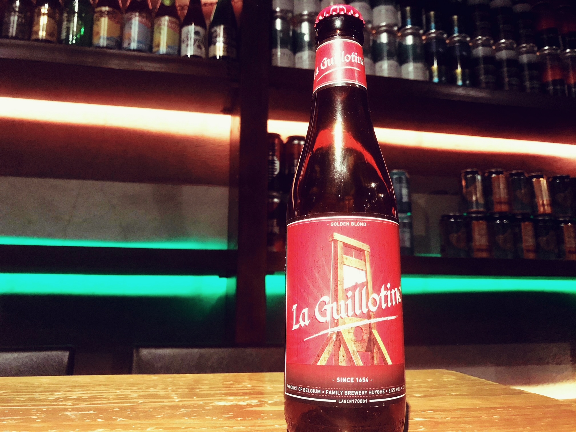 目を惹く赤いラベルには、インパクトのある断頭台(ギロチン)が描かれています。