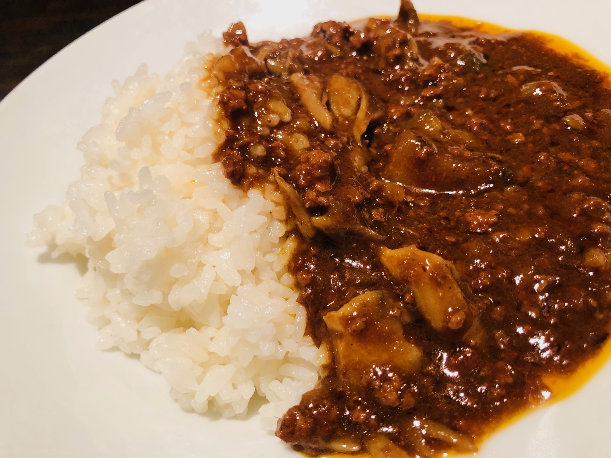 挽肉ときのこや茄子が絡まるカレーを頬張りつつ、ジントニックを楽しんでみませんか?