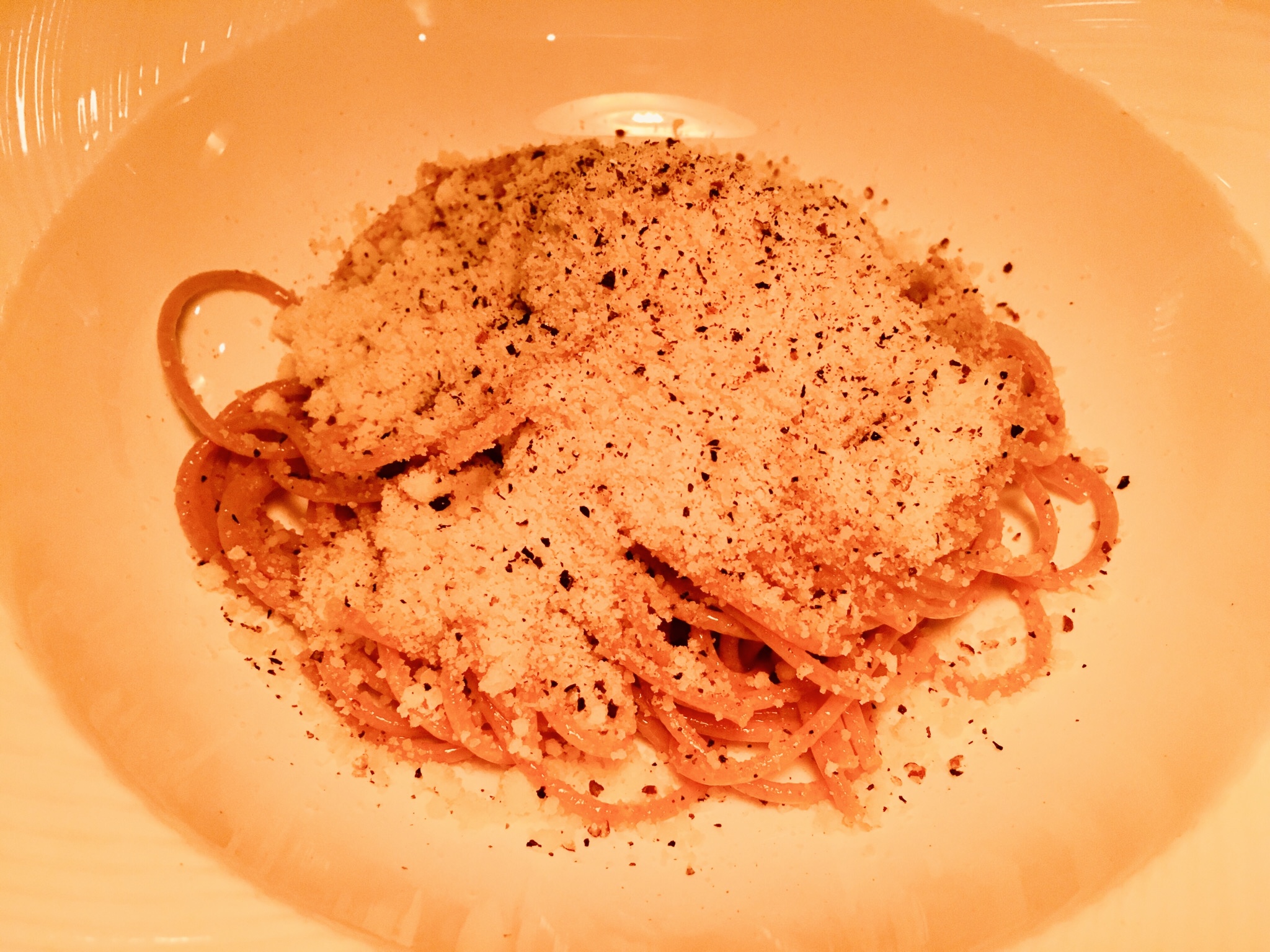 卵を使わないカルボナーラのようなイメージの一皿、濃厚なチーズとガーリック、ペッパーのパンチ力を楽しめるまさにBARのパスタです。